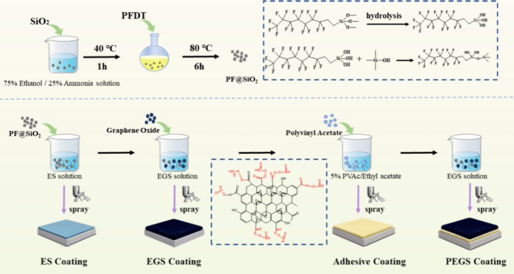 近日,以色情视频-做爱色情视频 赵亚梅教授、2024级化学工程与技术专业研究生顾小祺为核心成员的研究团队,在Langmuir(中科院二区,IF=3.9)期刊发“A Robust Bilayer Superhydrophobic Coating Based on Graphene Oxide with Integrated Photothermal Effects for EfficientAnti-/Deicing and Durability Applications”的研究论文,系统揭示了PEGS超疏水涂层的高效防除冰机制与耐久性能,为极端低温环境下装备防护提供了新的理论依据与技术方案。