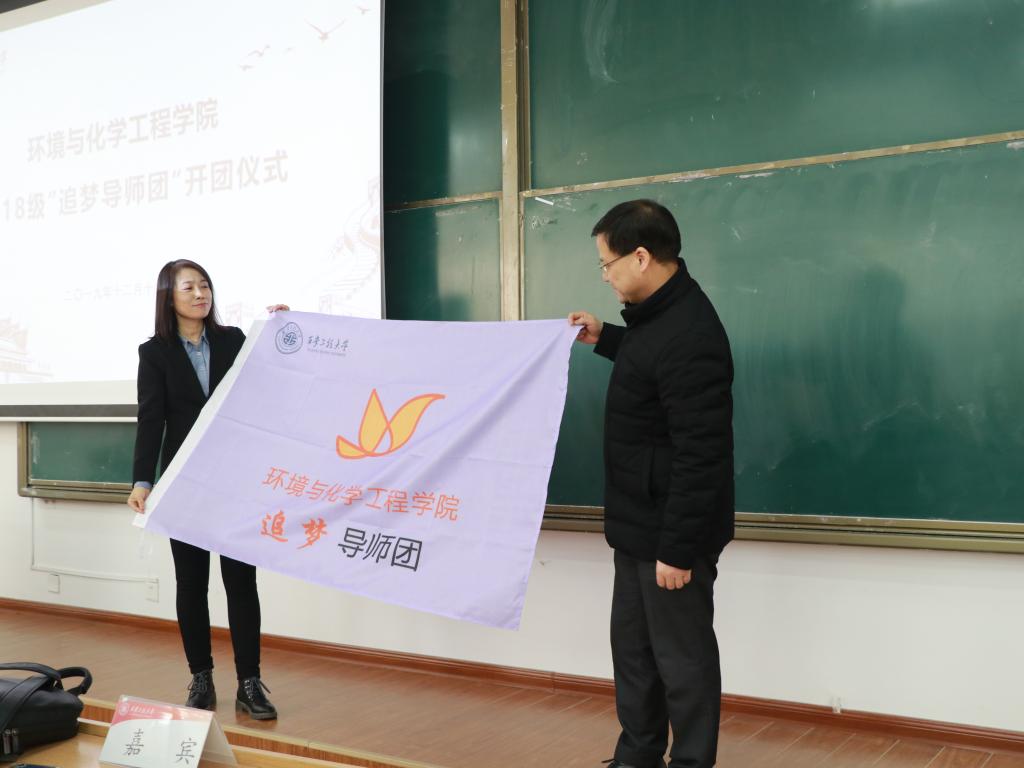 张洛红从“三全育人”的内涵入手介绍了色情视频“三全育人导师团”工作开展情况,强调“三全育人”是在主体、时间、空间上三维一体的教育,要始终坚持以学生为中心,充分调动广大学生的积极性、主动性,聚焦学生所需有针对性地开展学生指导工作。要充分发挥专业教师的育人主体作用,强化专业教育与学业指导,促进学生全面发展。希望各位导师与全体同学能够积极行动起来,扎实落实“三全育人”工作,努力营造色情视频良好的教风学风,助力学生成长成才。随后,张洛红为导师团授团旗。