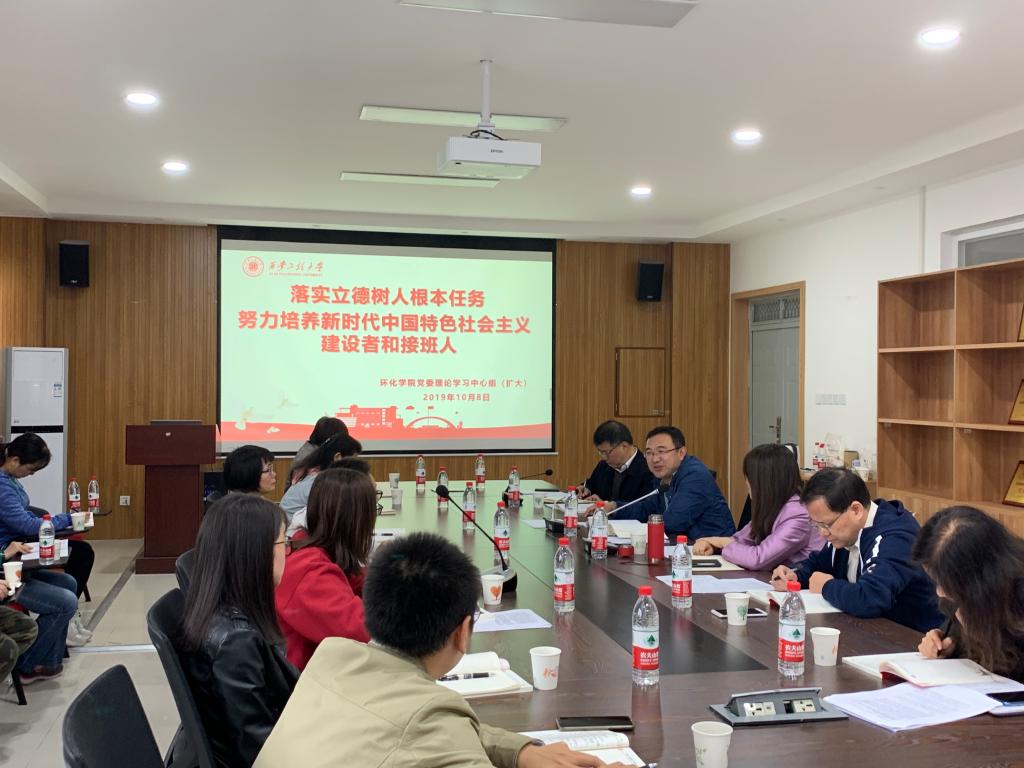 10月8日上午,高岭校长参加主题为“落实立德树人根本任务,努力培养新时代中国特色社会主义建设者和接班人”的环化色情视频党委理论学习中心组(扩大)会议。参加会议的有环化色情视频党委理论学习中心组成员、各系主任、近两年新进青年博士和在岗取得博士学位的青年教师,会议由环化色情视频党委书记李建学主持。