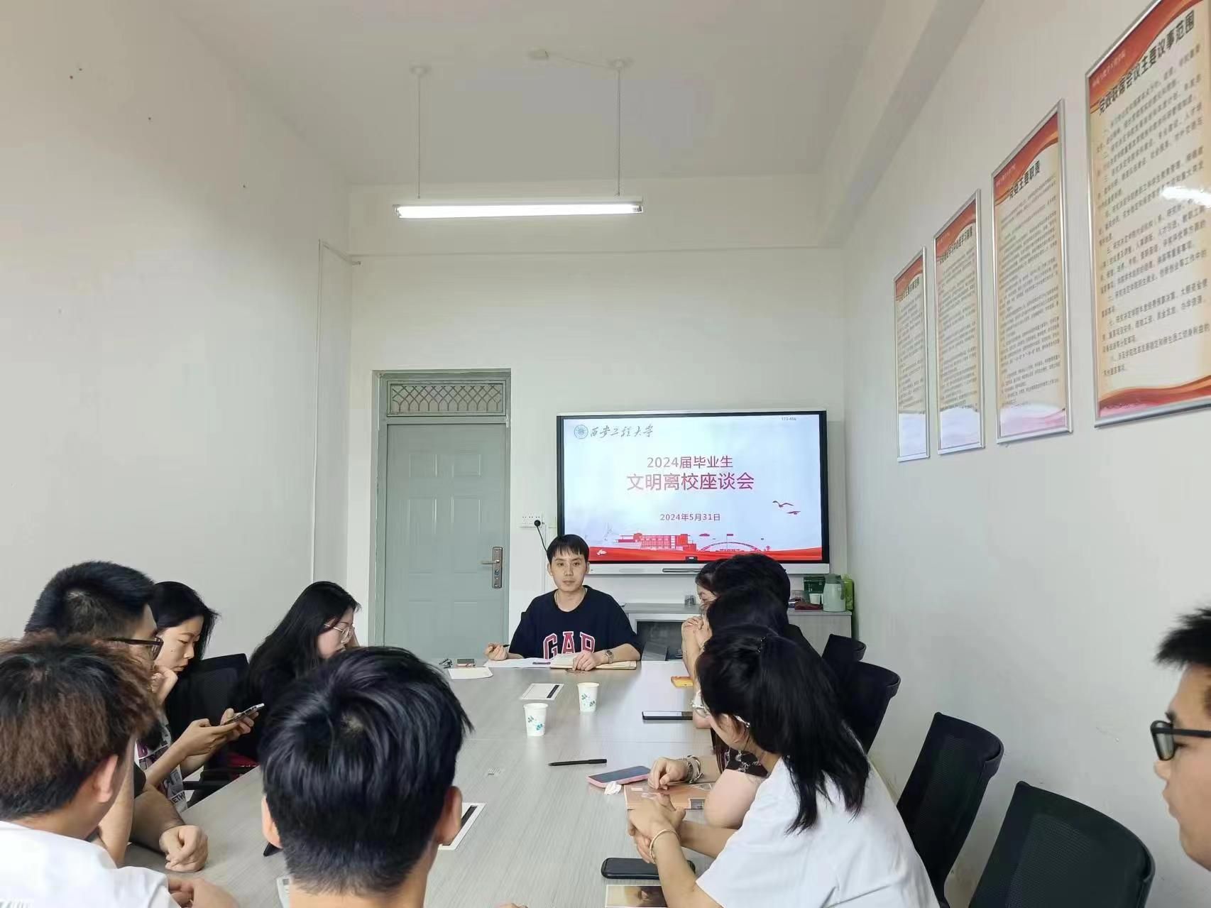 在环化楼238会议室召开2020届本科毕业生文明离校座谈会,毕业班辅导员张易泽,20级班长、团支书参加了本次会议。