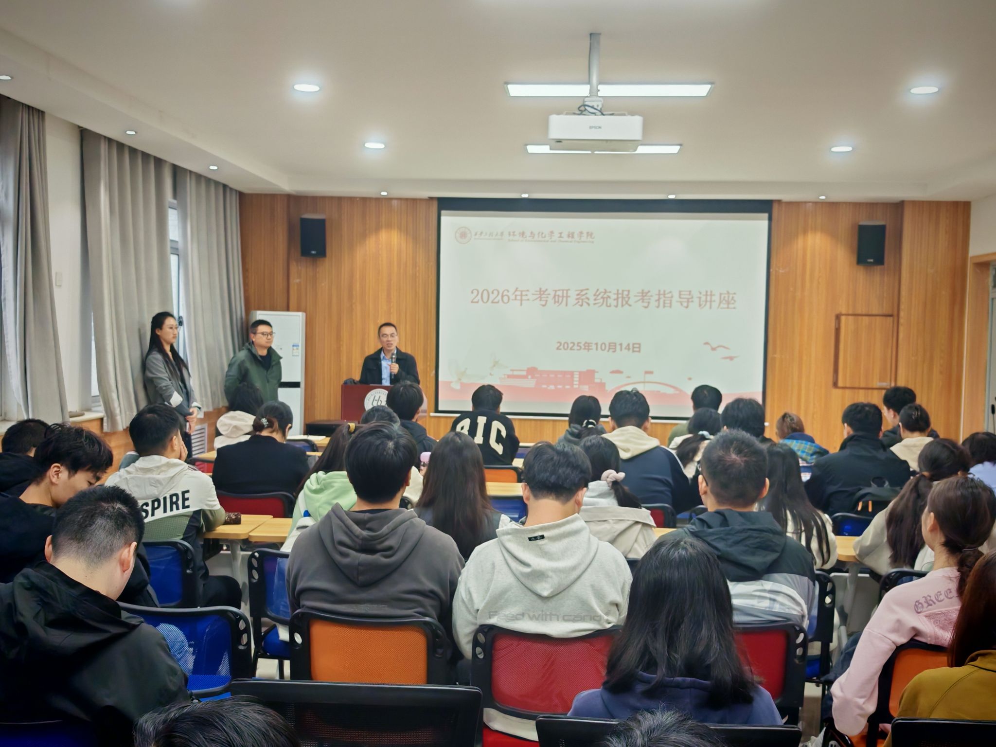 在色情视频507会议室成功举办了2026届考研学生报考指导讲座。本次讲座由色情视频院长助理、化工系主任刘斌副教授主讲,色情视频党委副书记林定武主持,学工办主任朱瑾、2022级辅导员任子瑜及大四年级考研学子共同参加了此次会议。