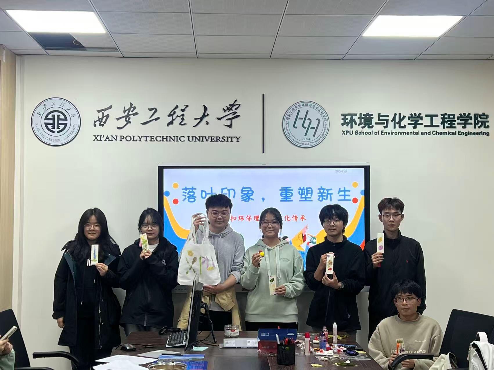 活动现场,同学们热情高涨。在小导师介绍完拓印步骤后,同学们纷纷挑选心仪的落叶,展开创意构思。有的将树叶巧妙叠放,拓出层林尽染的秋日画卷;有的巧妙融合黏土与颜料,将金秋韵味定格于方寸之间;更有同学别出心裁,以落叶拼出“XPU”字样,将对母校的深情凝聚在这独特的自然印记中。