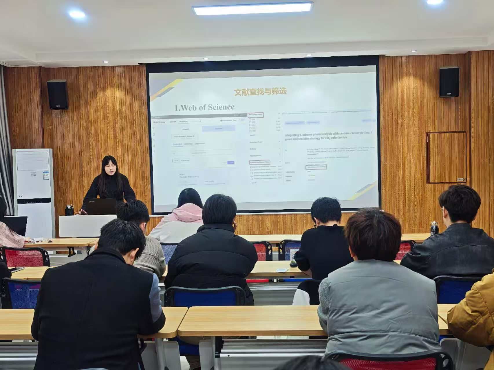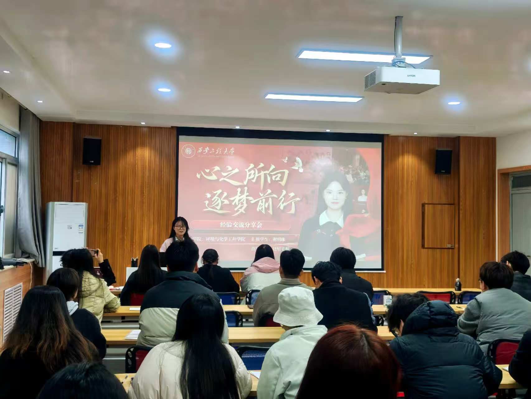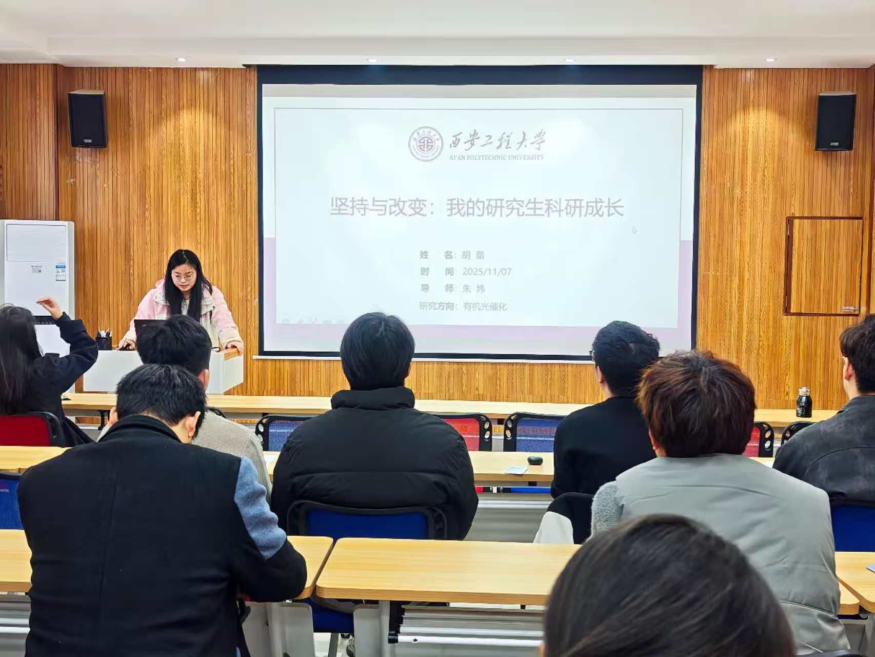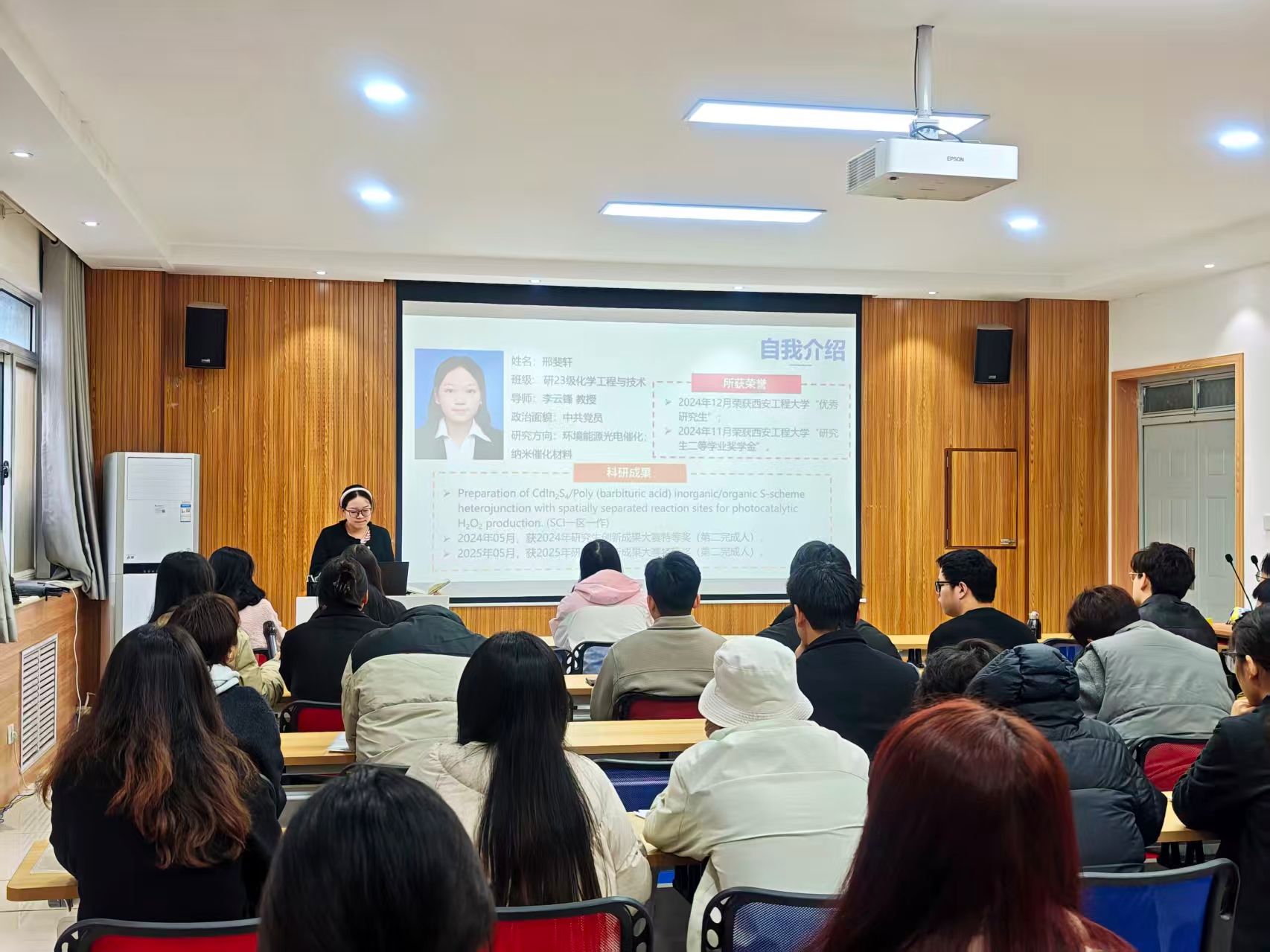 分享环节中,邢斐轩同学结合自身经历,介绍了高水平论文发表经验与参与创新成果大赛的的实战逻辑,鼓励大家要积极参与社会实践和科技赛事。谢明珠重点展示了其代表性科研成果,并分享了担任色情视频党建助理期间的心得体会,她强调,合理规划时间、适配学习方法,是平衡学业与工作的关键。王佳瑶以自己发表的论文为切入点,系统阐述了“研分三阶段”的成长规划与能力锻造路径,提醒同学们锚定目标、深耕专业、持续前行。胡苗同学则以其论文“三协同的废水处理材料创新”为例,分享了科研成果向实际应用转化的实践智慧与思考。