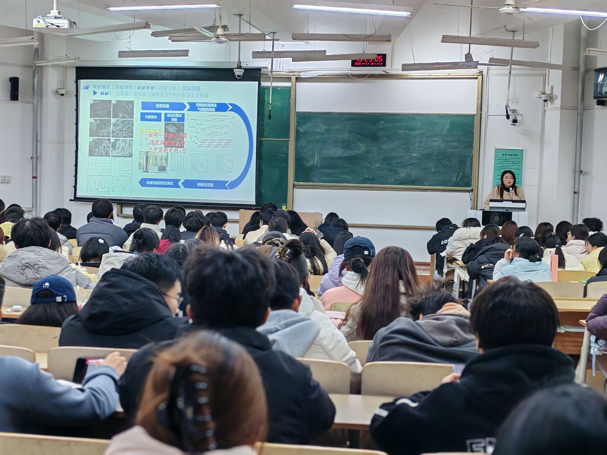 在经验分享环节,应用化学专业常心仪围绕“绩点与科研的双重赋能”展开讲述,强调了专业成绩在保研过程中的基础性作用,并结合自身参与大创项目及发表论文的经历,鼓励同学们主动投身科研,提升创新实践能力。生物工程专业李冬豪聚焦“夏令营与预推免”,系统介绍了“冲刺—稳妥—保底”相结合的梯度择校策略。他特别提到,自己在求学过程中多次受到学校各类奖助政策的支持,因此更加珍惜机会,奋发前行。应用化学专业索欣歌针对低年级同学的困惑,提出分阶段规划建议:大一首重基础课程与绩点积累,大二积极参与科研竞赛,大三精准投递与备战面试。她还分享了在国家奖学金、助学金等资助政策的帮助下,顺利完成学业并成功保研的励志经历。化学工程与工艺专业薛宇昊则围绕面试环节,细致讲解了专业问题应答与科研经历陈述的相关技巧与注意事项。