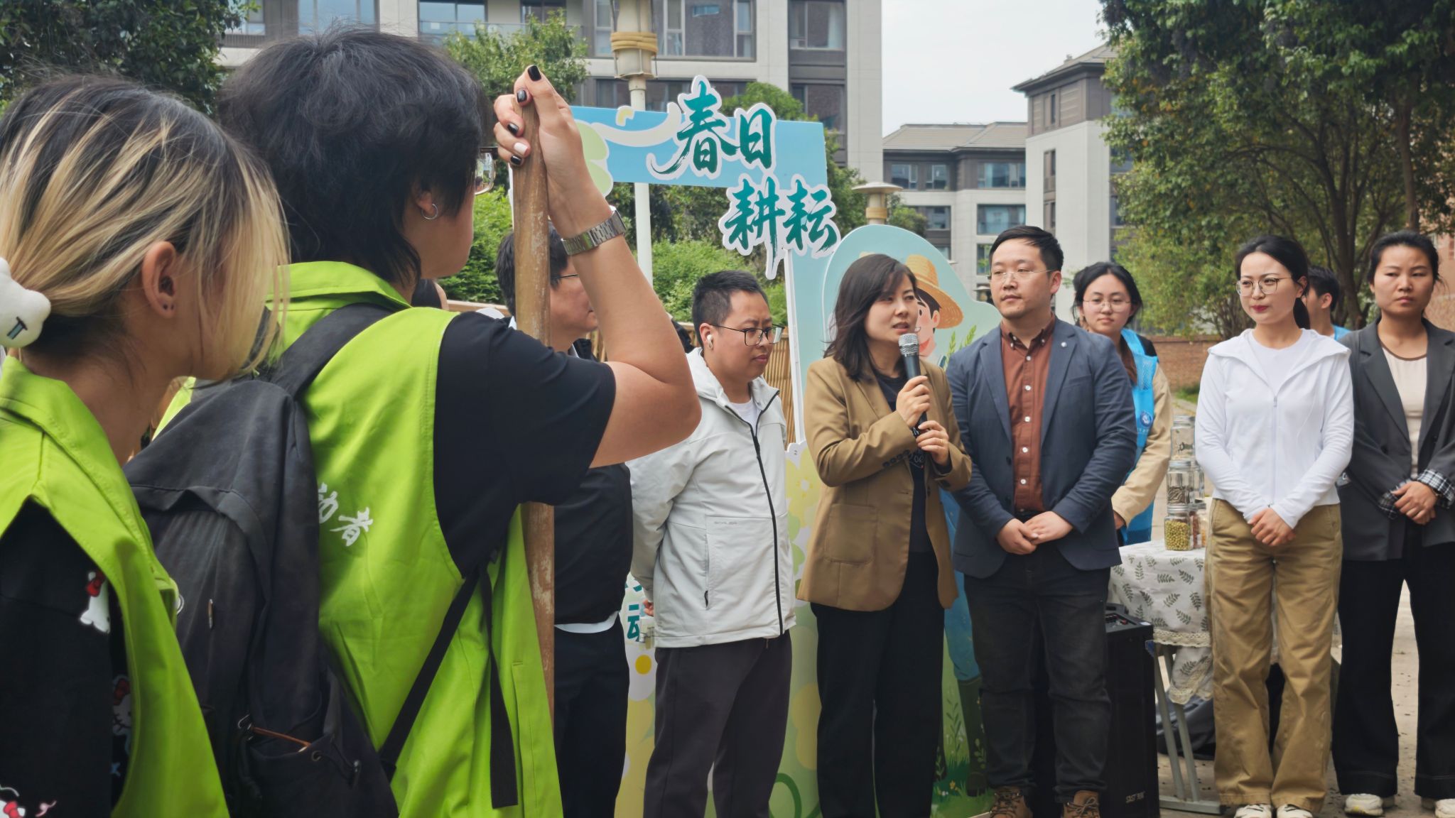 活动伊始,李璐瑶作动员讲话。她结合新时代劳动教育的重要意义,勉励同学们在劳动中强健体魄、锤炼品格。随后,刘啸尘、原龙两位老师围绕学科特色,结合自身科研成果,介绍了团队研发的新型环保化肥,并就有益微生物对植物生长的作用开展科普讲解。启动仪式结束后,春耕实践正式展开。同学们分工明确、配合默契,认真完成除草、翻地、起垄等前期准备工作。接着,大家手持秧苗与种子,规范栽种辣椒苗、点播玉米种子,并及时为新栽作物浇水,确保秧苗茁壮成长。