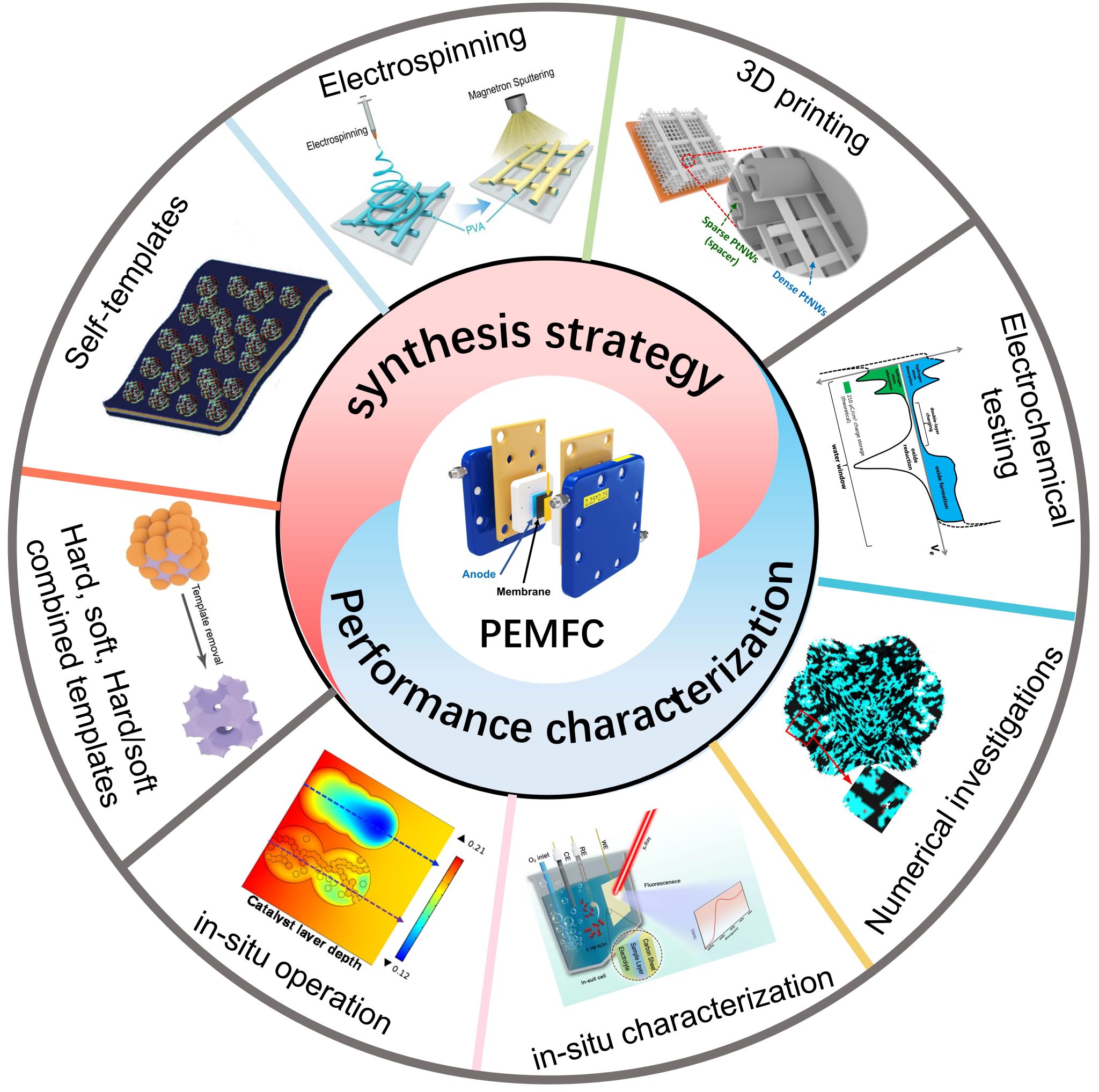 此外,团队系统综述了先进氢燃料电池及柔性可穿戴器件的催化剂与催化层设计。从器件的基本工作原理,到催化剂设计的前沿策略,再到自支撑催化层的先进构筑方法以及提升膜电极性能的机理研究手段等。最后,对该领域当前面临的挑战和未来发展方向进行了展望,旨在为下一代高性能长寿命储能器件的研发提供理论指导。相关成果发表在Renew. Sust. Energ. Rev.2026, 231, 116741(中科院一区TOP,IF=16.3);Nano Research, 2025, 18, 94907684(中科院一区TOP,IF=9.0)上。