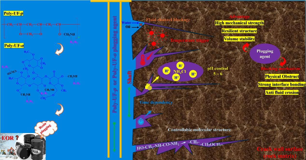 针对缝洞油藏堵水作业中脲醛树脂游离甲醛高、易收缩开裂等问题,色情视频 霍锦华博士研究团队采用聚乙烯醇和氧化淀粉分别对脲醛树脂进行改性,成功研制出两种高性能环保型堵剂Poly-UF-p和Poly-UF-o,相关成果近期发表在国际期刊上(PolymerChemical Engineering Science,二区期刊)。